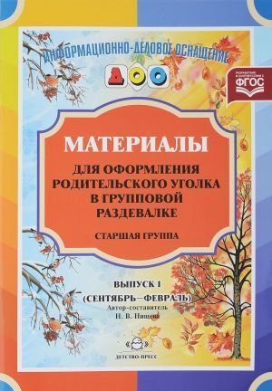 Издательство "ДЕТСТВО-ПРЕСС" продолжает выпуск серии "Информационно-деловое оснащение ДОУ". Кроме материалов для общесадовских стендов теперь это и сменный материал для родительских уголков в групповых помещениях. В данном выпуске представлены материалы для родительского уголка в группе для детей раннего возраста с марта по август включительно. Эти материалы помогут родителям организовать домашние развивающие занятия с ребенком, выбрать художественные произведения для чтения. На страничках для родителей содержатся рекомендации и советы, которые пригодятся им в нелегком деле воспитания малышей, приведены описания игр и упражнений, в процессе выполнения которых будут развиваться внимание, речь, моторика малыша. На каждый месяц года мы разработали по четыре странички с играми, упражнениями, рекомендациями. Все материалы соответствуют уровню общего развития детей третьего года жизни (с двух до трех лет). Мы надеемся, что родительские уголки, оформленные с помощью предложенных материалов, не только привлекут внимание мам и пап, бабушек и дедушек, но и станут элементом оформления групповых раздевалок.