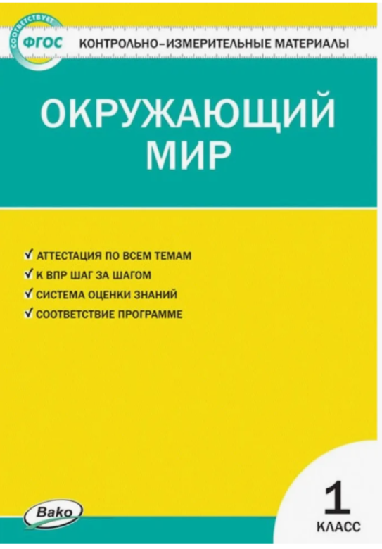 В пособии представлены контрольно-измерительные материалы по курсу «Окружающий мир» для 1 класса к учебнику А.А. Плешакова (М.: Просвещение). Все задания соответствуют программе общеобразовательных учреждений и требованиям нового ФГОС для начальной школы. Систематическая работа с материалами сборника позволит обучить школьников работе с тестами, что поможет в дальнейшем успешно выполнить задания государственной аттестации. Издание адресовано учителям начальных классов, а также школьникам и их родителям.