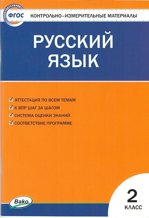 В пособии представлены контрольно-измерительные материалы по русскому языку для 2 класса, составленные в соответствии с требованиями ФГОС НОО и с учетом примерной программы начального общего образования по русскому языку. В конце пособия ко всем заданиям приведены ответы.Издание адресовано учителям начальных классов, а также школьникам и их родителям.Составитель И.Ф. Яценко.6-е издание.