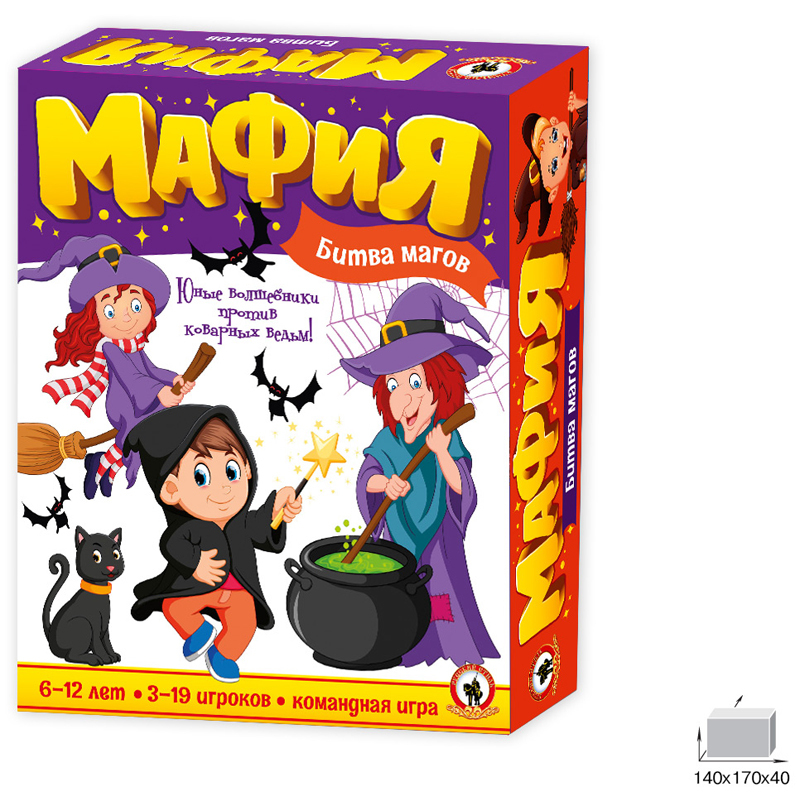 Этот вариант известной игры создан специально для маленьких игроков. Детям предстоит стать участниками увлекательной и таинственной истории, произошедшей в школе волшебства. Сыграйте и узнайте, удастся ли маленьким добрым волшебникам победить колдовство злых коварных ведьм. Игра подойдет для группы детей от 6-18 человек в возрасте 6-ти лет и старше и станет отличным развлечением на празднике. Состав игры: Карты – 18 шт., правила игры.