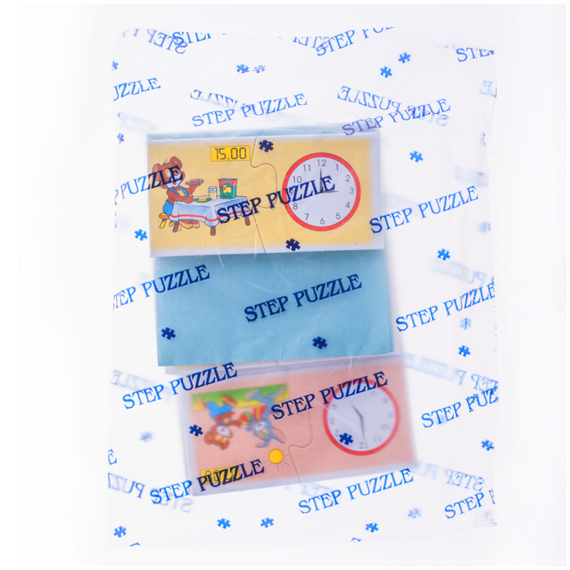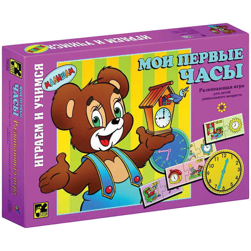 Элементы карточек с изображением часов со стрелками перемешивают и раскладывают на игровой поверхности картинками вниз. Игру начинает тот, у кого оказалось изображение просыпающегося медвежонка. Он берет с игровой поверхности один элемент, показывает его игрокам и называет время на часах.