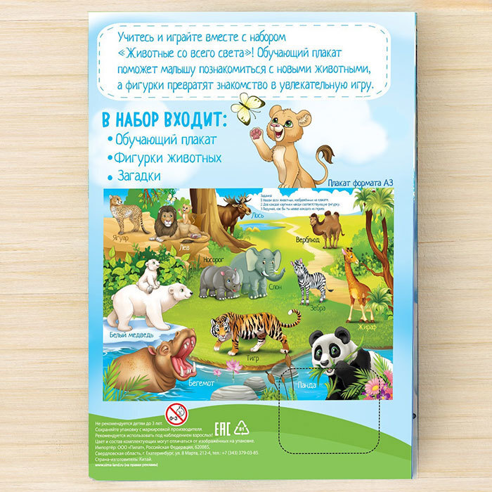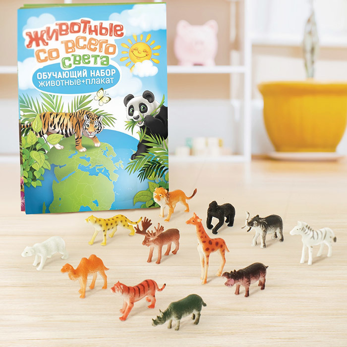 Набор «Животные со всего света» создан для детей от 3 лет. Он познакомит малыша со зверятами, которые живут на разных материках. Набор состоит из обучающего плаката и миниатюрных фигурок животных.Используйте фигурки в сюжетных играх — так малыш быстро запомнит названия животных.