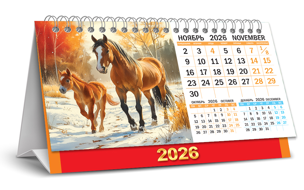 Календарь-домик перекидной (бол., КДБ) Символ года. Прекрасные лошади (акварель)