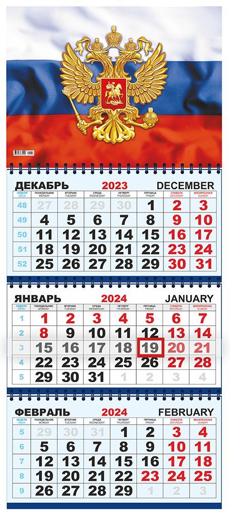Трехблочный календарь (трио). Полноцветные численники. Шапка: картон 250 г/м, лак, 295х220мм. Размер в развернутом виде 295х730мм.