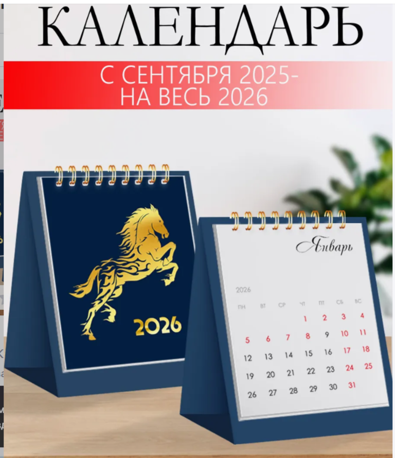 Датированный с сентября 2025 года и на весь 2026 год, он позволит вам планировать важные даты, события и встречи заранее. Год Лошади принесет вам удачу и вдохновение. Стильный дизайн и компактные размеры делают этот календарь идеальным для любого стола.