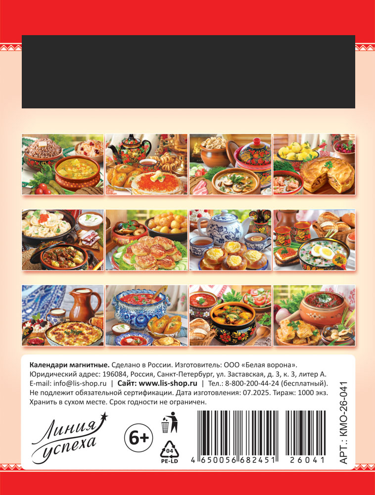Отрывной календарь, 14 листов, размер 94х128мм, на обороте магнит. В индивидуальной упаковке.