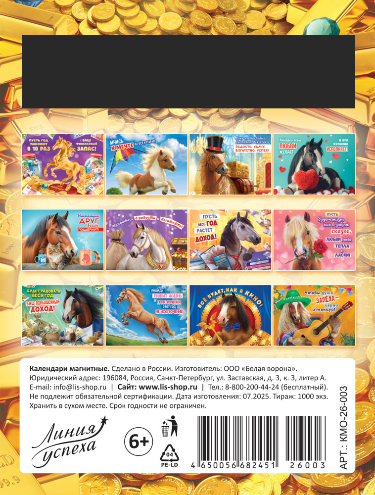 Отрывной календарь, 14 листов, размер 94х128мм, на обороте магнит. В индивидуальной упаковке.