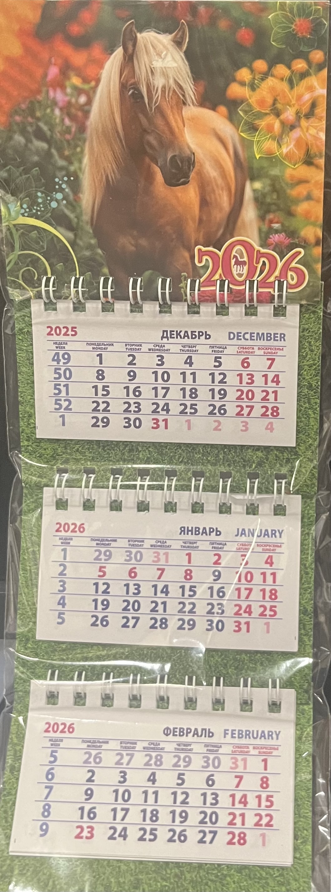 Календарь на магните квартальный 2026 "Лошадка пегая"