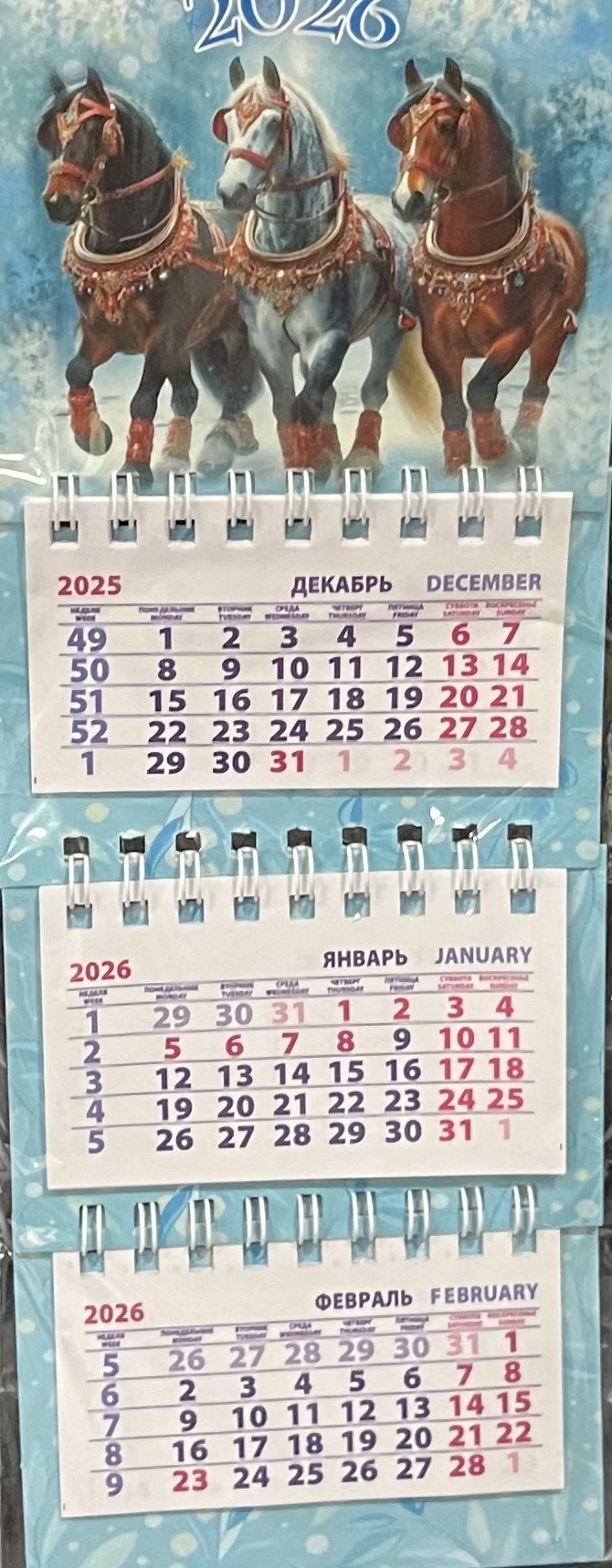Календарь на магните квартальный 2026 "Тройка лошадей"