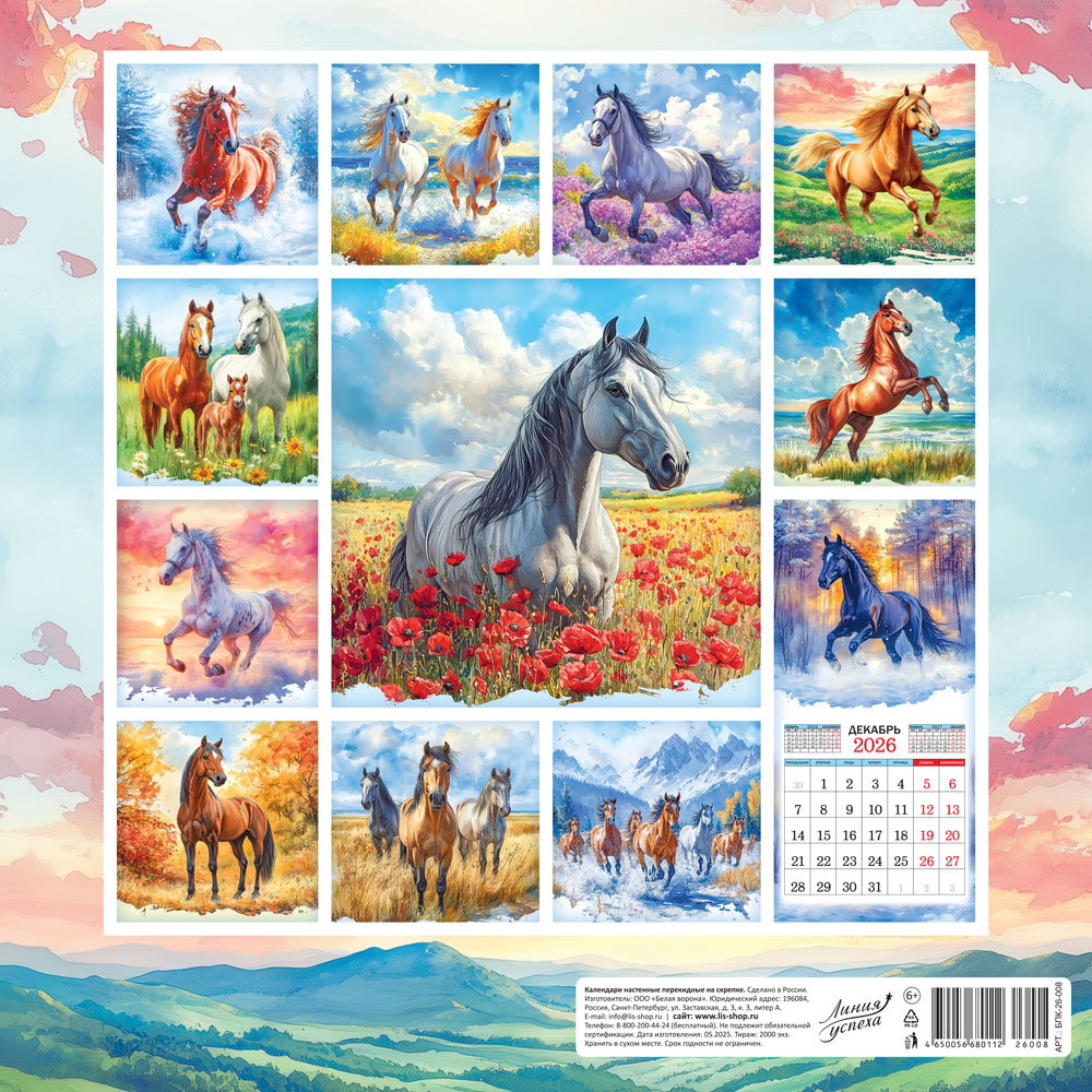 В УПАКОВКЕ. Индивидуальный пакет с европодвесом. 12 листов, на скрепке, размер 290х290 мм. Обложка: УФ-лак, картон 225 г/м. Внутренний блок: бумага мелованная 105 г/м.