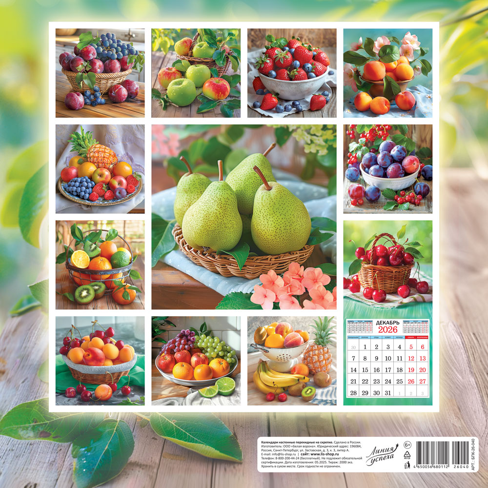 В УПАКОВКЕ. Индивидуальный пакет с европодвесом. 12 листов, на скрепке, размер 290х290 мм. Обложка: УФ-лак, картон 225 г/м. Внутренний блок: бумага мелованная 105 г/м.