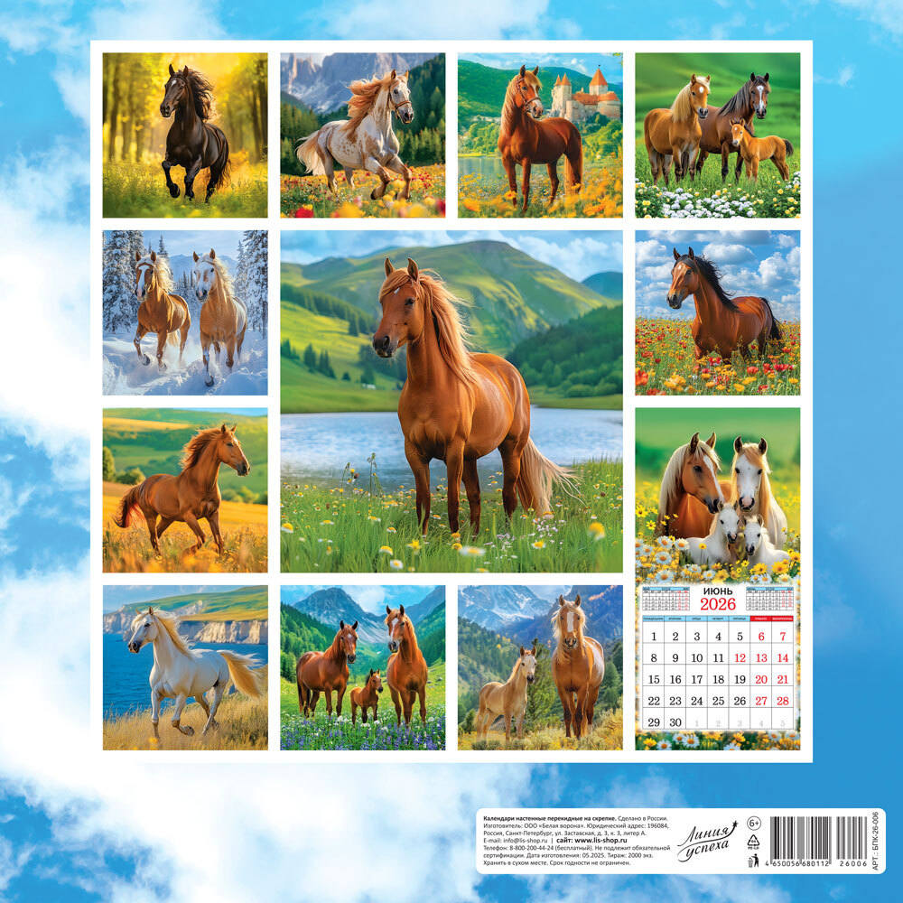 В УПАКОВКЕ. Индивидуальный пакет с европодвесом. 12 листов, на скрепке, размер 290х290 мм. Обложка: УФ-лак, картон 225 г/м. Внутренний блок: бумага мелованная 105 г/м.