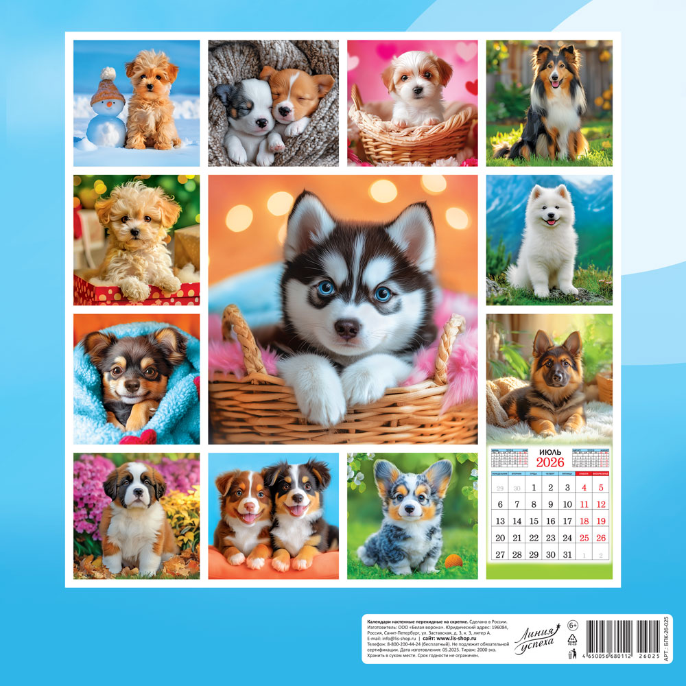 В УПАКОВКЕ. Индивидуальный пакет с европодвесом. 12 листов, на скрепке, размер 290х290 мм. Обложка: УФ-лак, картон 225 г/м. Внутренний блок: бумага мелованная 105 г/м.