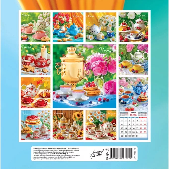 Календарь перекидной на скрепке на 2026 год Чаепитие