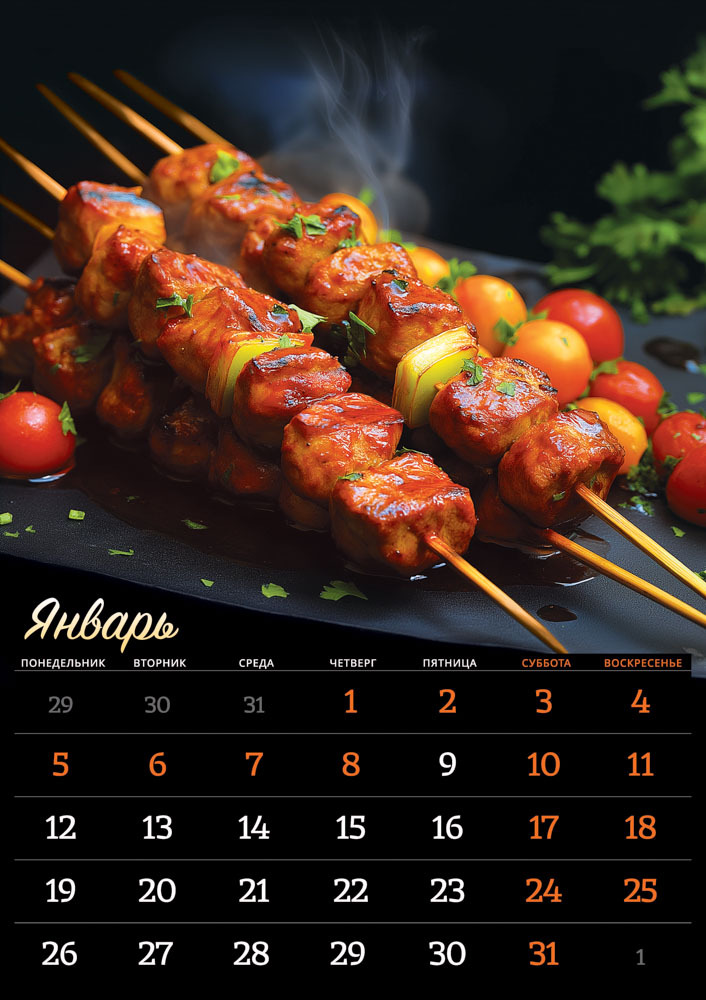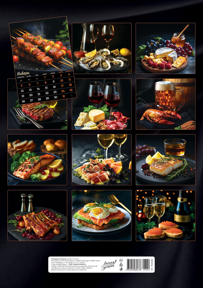 Размер 340х480мм, 6 листов. Обложка: УФ-лак, картон 225гр/м2. Внутренний блок: мелованная бумага 100 гр/м2