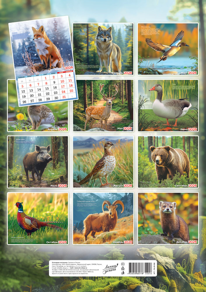 Размер 340х480мм, 6 листов. Обложка: УФ-лак, картон 225гр/м2. Внутренний блок: мелованная бумага 100 гр/м2