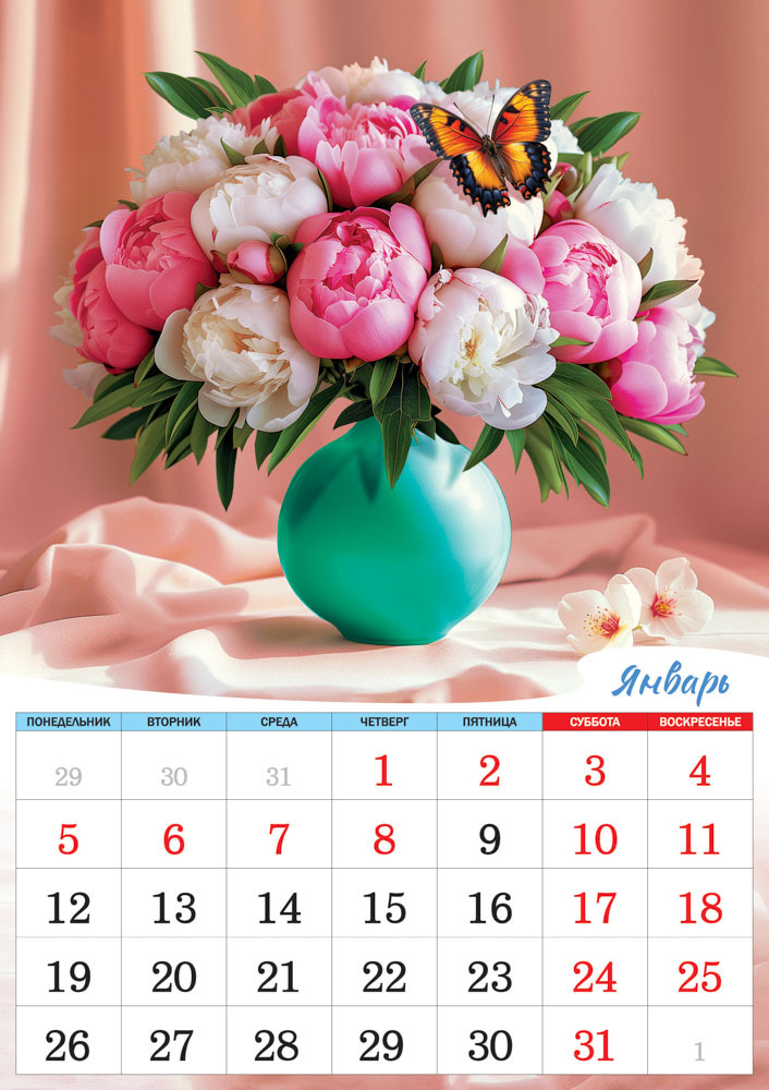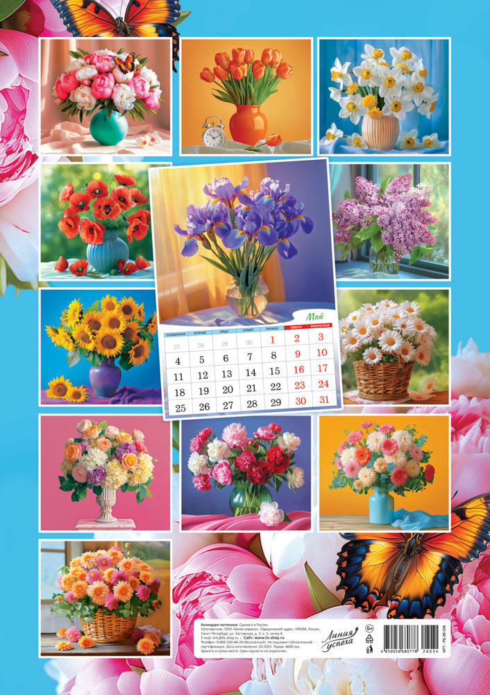 Размер 340х480мм, 6 листов. Обложка: УФ-лак, картон 225гр/м2. Внутренний блок: мелованная бумага 100 гр/м2
