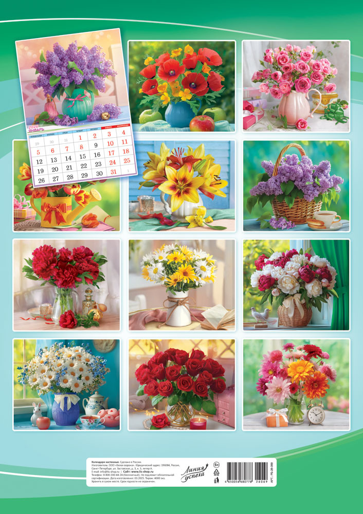 Размер 340х480мм, 6 листов. Обложка: УФ-лак, картон 225гр/м2. Внутренний блок: мелованная бумага 100 гр/м2