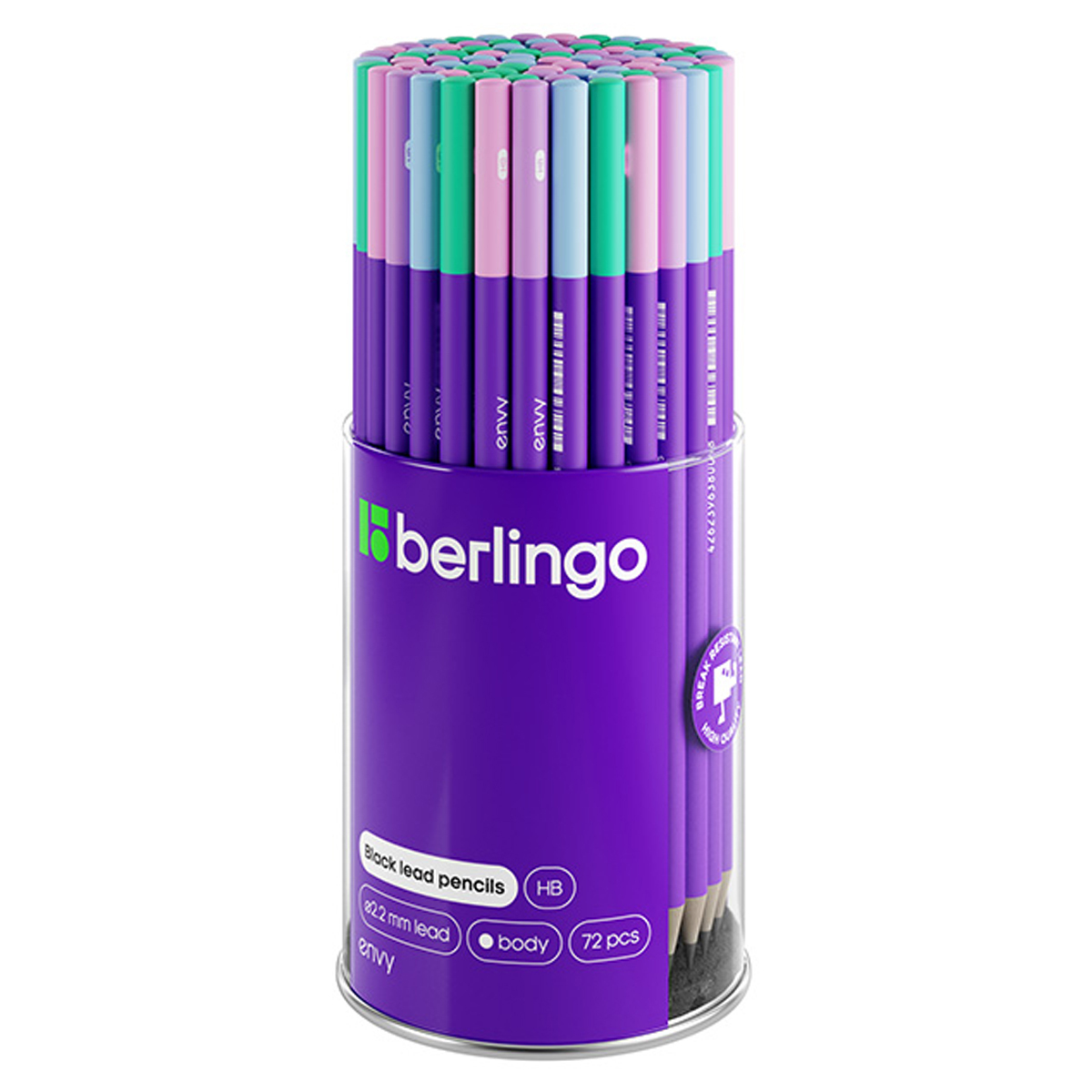 Чернографитные карандаши Berlingo Envy круглой формы с заточкой изготовлены из светлого дерева. Твердость грифеля – HB, диаметр – 2,2 мм, длина карандаша – 177 мм. Дизайны корпуса представлены в 4 цветах. Карандаш создан из специально обработанной древесины для идеальной заточки. Он подходит для черчения и рисования. Карандаш не ломается при падении и безопасен для детей. Упаковка по 72 штуки в прозрачную разъемную ПВХ-тубу с возможностью использования в качестве подставки. Индивидуальный ШК на корпусе.