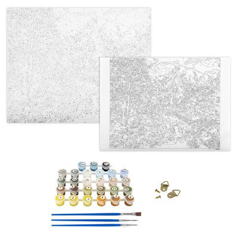 Представлен эксклюзивный сюжет по картине российского художника Разживина И.В. В набор входит: 1 хлопковый холст на подрамнике с контуром, 1 лист бумаги для тренировки, набор из 27 акриловых красок объемом 3 мл каждая, 3 синтетические кисти и комплект металлических креплений для подвешивания на стену. Краски укрывистые, быстро сохнут без потери цвета. Каждый цвет в наборе подходит под конкретный номер, благодаря чему нет необходимости смешивать краски. Однако, если Вы хотите добиться нового оттенка, наши краски с легкостью позволят это сделать благодаря отличной смешиваемости. 3 синтетические кисти разного размера идеально подойдут для закрашивания элементов различной сложности. Холст из 100% хлопка плотностью 290 г\м2 с высококачественной печатью и отличным натяжением. При работе с картиной дополнительно могут понадобиться: емкость с водой для мытья кисти и салфетка для удаления воды с кисти (В КОМПЛЕКТ НЕ ВХОДЯТ). Подходит для потребителей всех возрастов от 8 до 80 лет. Поставляется в картонной упаковке с ручкой.