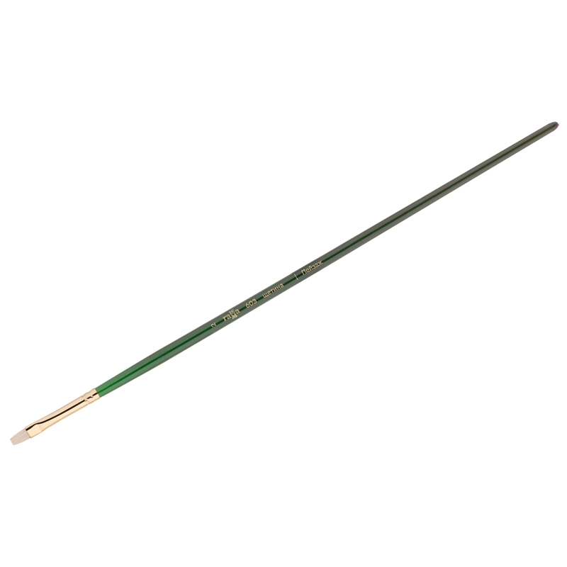 Кисти серии «Пейзаж» изготавливаются из отбеленной и очищенной специальными химическими реагентами щетины. Кисть даже после продолжительного использования не теряет свою форму. В пучке преобладают волоски с расщепленным кончиком, поэтому кисть хорошо наполняется краской и хорошо отдает краску. Упругий и прочный свиной волос отлично подходит для работы с тяжелыми масляными и акриловыми красками. Щетина износоустойчива к сильным растворителям. Длинная ручка кисти покрыта глянцевым лаком изумрудного цвета.