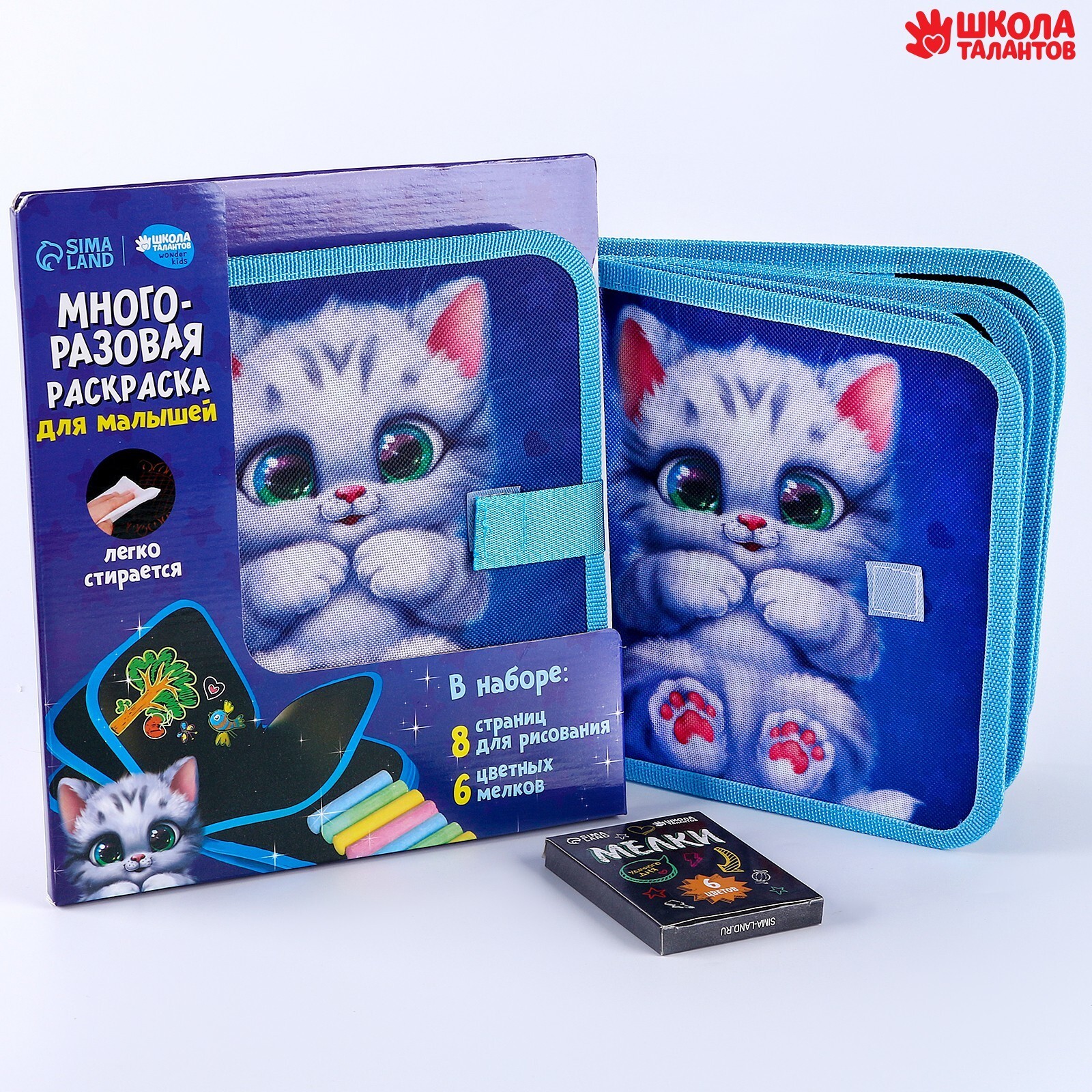 В отличие от бумажных альбомов книгу можно использовать многократно. Чтобы стереть следы мела с поверхности, можно использовать обычные влажные салфетки.