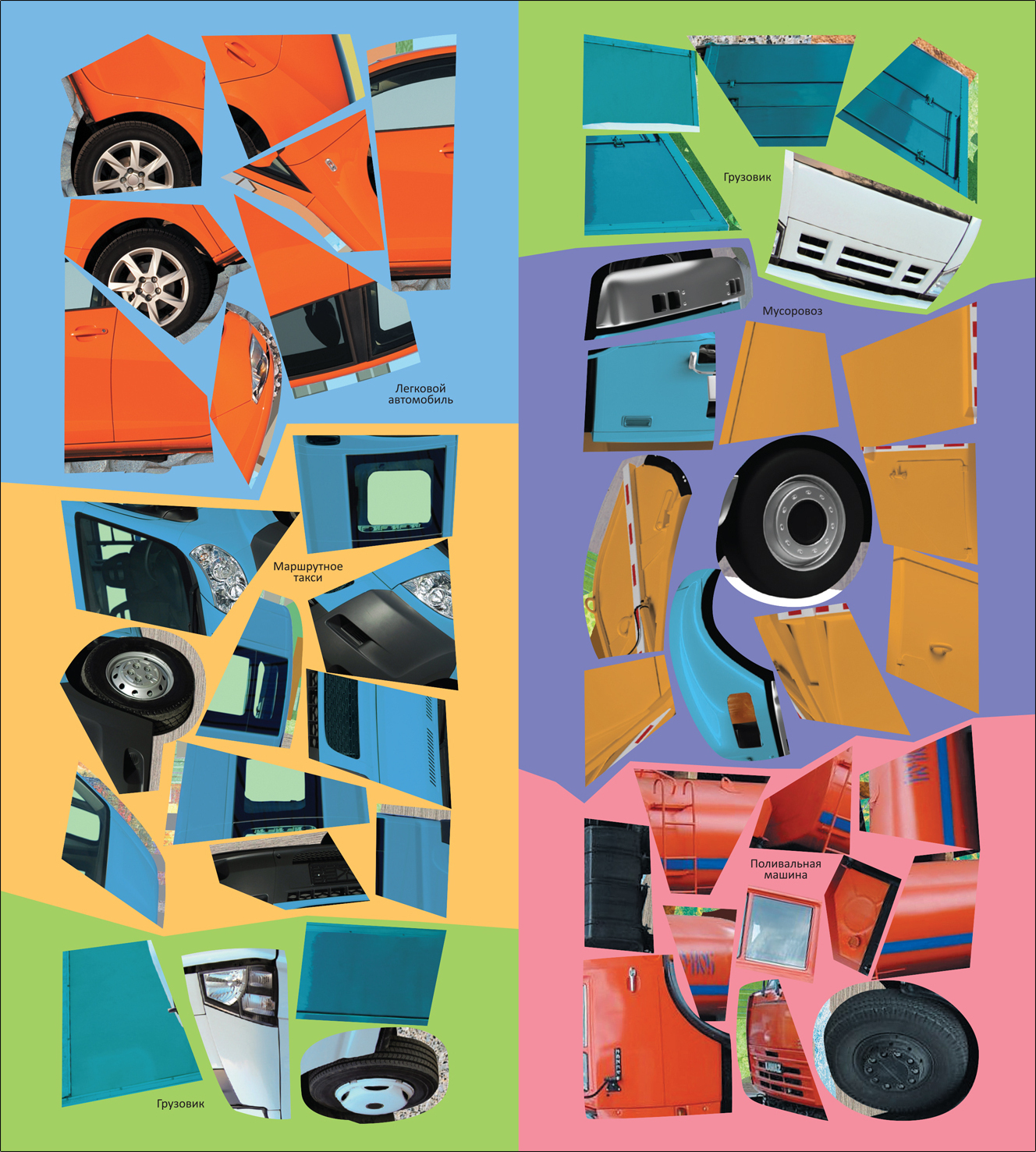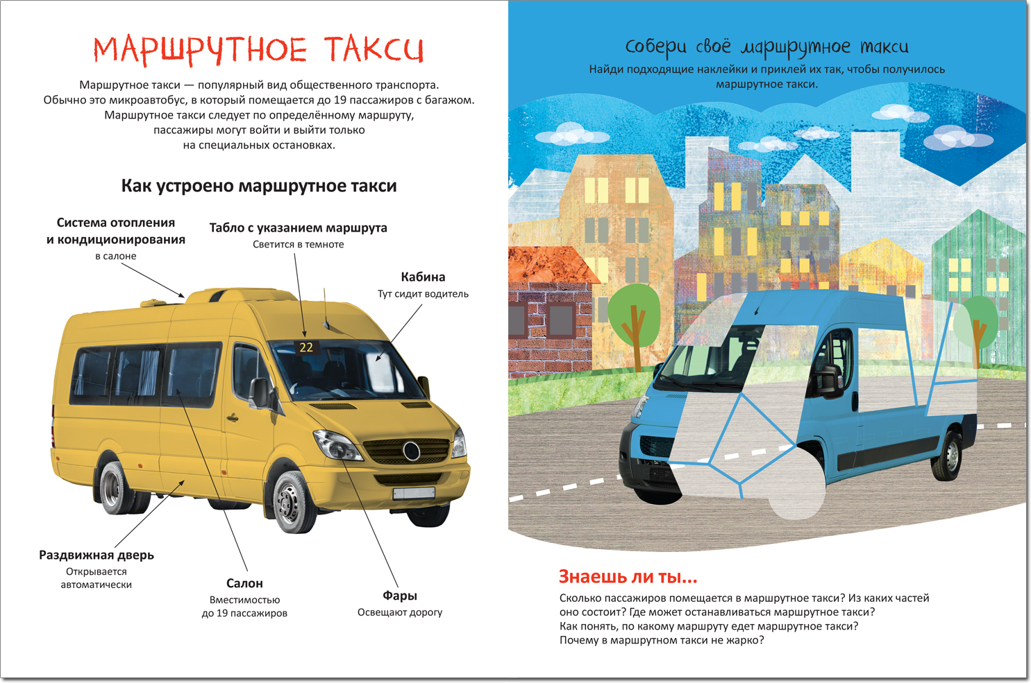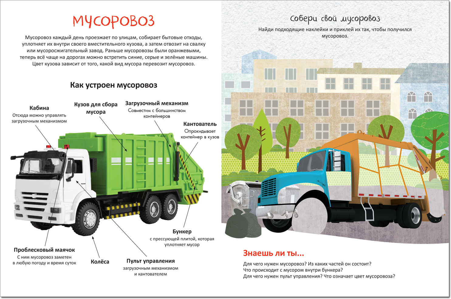 Доклеивая недостающие части на фотографии машин, ребенок не только познакомится с различными видами транспорта, но и узнает много интересного и полезного: как устроен легковой автомобиль, почему мусоровозы бывают разных цветов, какие необычные детали и особенности позволяют легко узнать поливальную машину. Закрепить полученные знания помогут вопросы и задания на каждом развороте. Размер – 255х195 мм. Книга предназначена для детей от 4 лет.