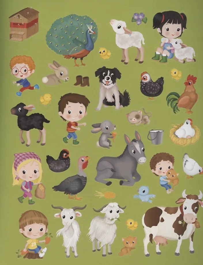 С помощью этой книжки ребёнок узнает много интересного о животных и растениях фермы. Выполняя игровые задания, он будет искать отличия в рисунках, проходить по запутанным лабиринтам, дорисовывать и раскрашивать картинки. Книга содержит 70 наклеек. На специальном развороте их можно расположить где угодно и создать свою неповторимую картину. Книжку удобно брать в дорогу или на отдых.