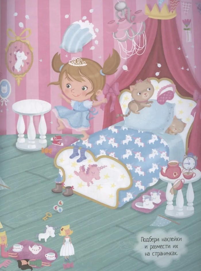 С помощью этой книжки ребёнок познакомится с миром маленькой принцессы. Выполняя игровые задания, он будет искать отличия в рисунках, проходить по запутанным лабиринтам, дорисовывать и раскрашивать картинки. Книга содержит 70 наклеек. На специальном развороте их можно расположить где угодно и создать свою неповторимую картину. Книжку удобно брать в дорогу или на отдых.