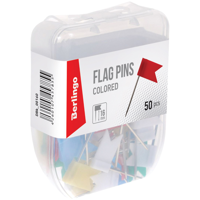 Булавки-флажки предназначены для создания отметок на картах, графиках и для крепления информации к пробковым доскам. Флажки пластиковые, разноцветные. Упаковка в пластиковую коробочку с европодвесом - по 50 шт.