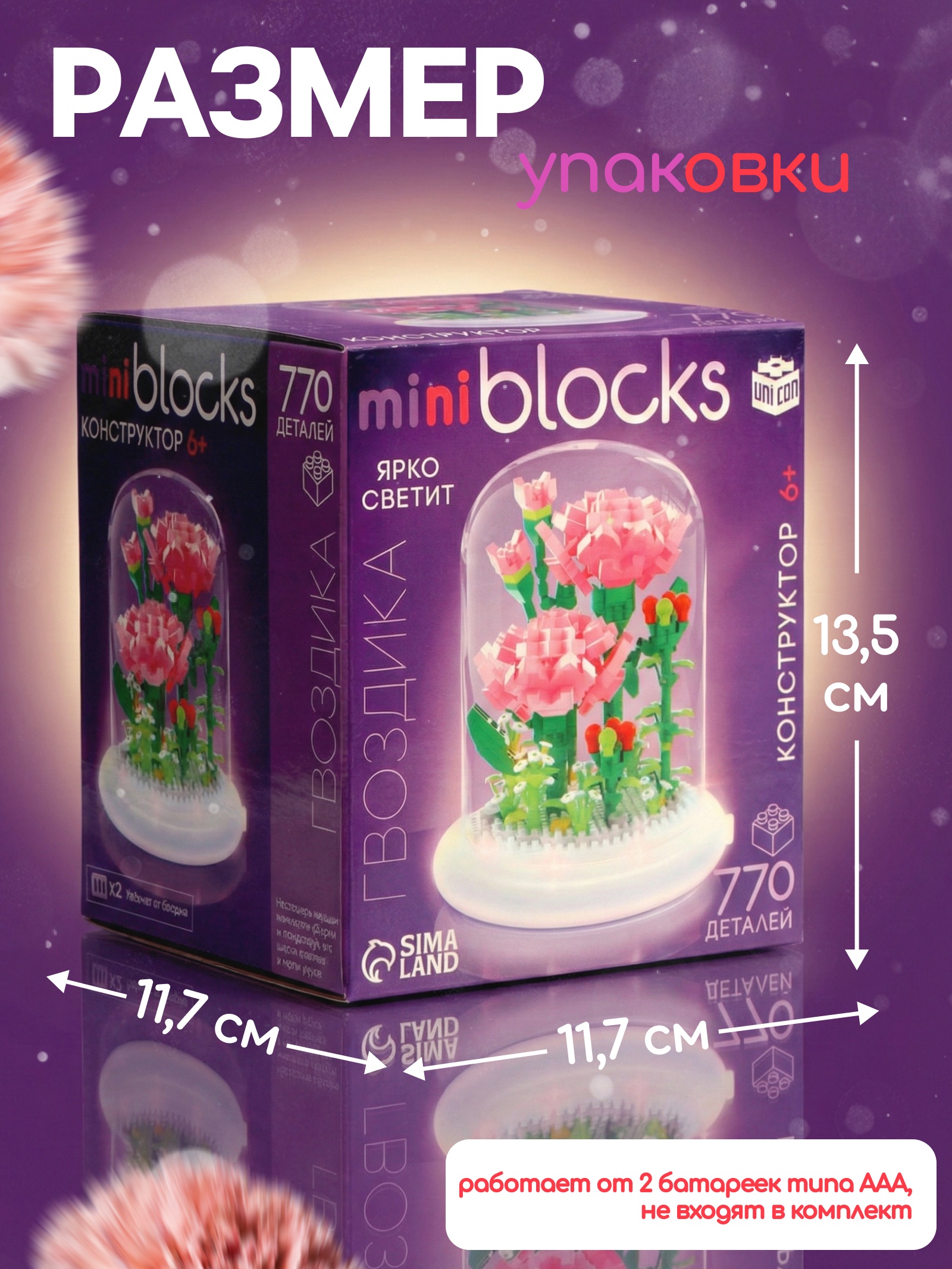 Создай вечный светящийся цветок! Конструктор Mini Blocks «Гвоздика» — это продвинутый набор для сборки объёмного цветка.