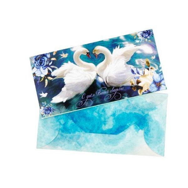Подарочный конверт – идеальный выбор для тех, кто ищет оригинальный и практичный подарок на свадьбу, свидание, день рождения или без всякого повода. Конверт для денег «С днем Вашей свадьбы» 8,5×17см. Отделка: глиттерный лак+