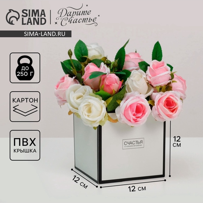 Коробка подарочная для цветов с пластиковой крышкой, упаковка, «Счастья в каждом мгновении», 12×12×12 см