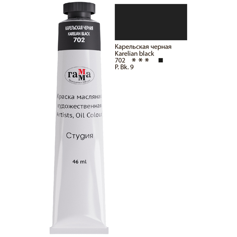 Масляные краски "Гамма" серии "Студия" изготавливаются из льняного масла, органических и неорганических пигментов. Кадмиево- кобальтовая группа заменена имитацией, что делает краски безопасными. Также в состав красок входит пчелиный воск, он придает краскам пастозную консистенцию и предотвращает от растрескивания после высыхания. Цветовой диапазон включает в себя как укрывистые краски, так и прозрачные. Масляные краски подходят для обучения и начинающих художников.