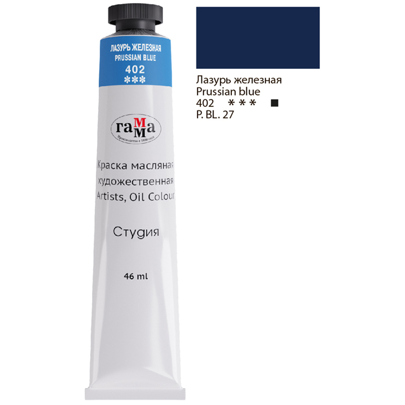 Масляные краски "Гамма" серии "Студия" изготавливаются из льняного масла, органических и неорганических пигментов. Кадмиево- кобальтовая группа заменена имитацией, что делает краски безопасными. Также в состав красок входит пчелиный воск, он придает краскам пастозную консистенцию и предотвращает от растрескивания после высыхания. Цветовой диапазон включает в себя как укрывистые краски, так и прозрачные. Масляные краски подходят для обучения и начинающих художников.