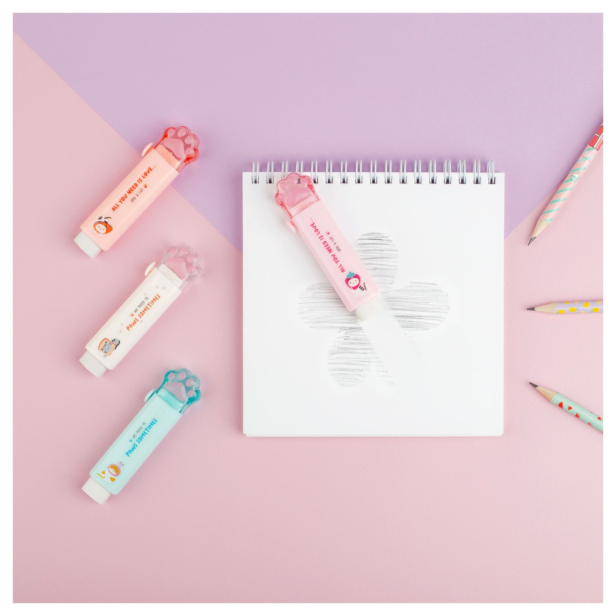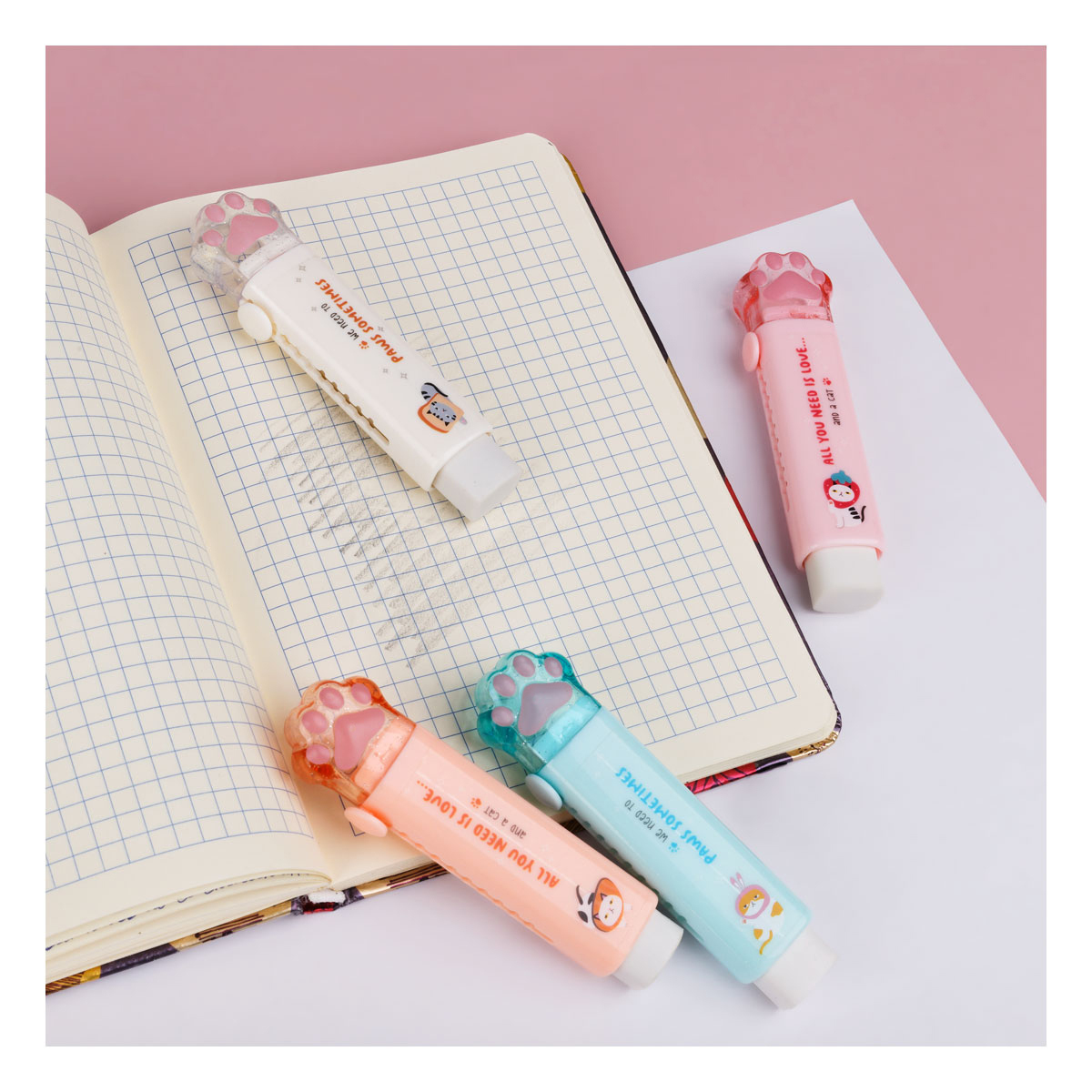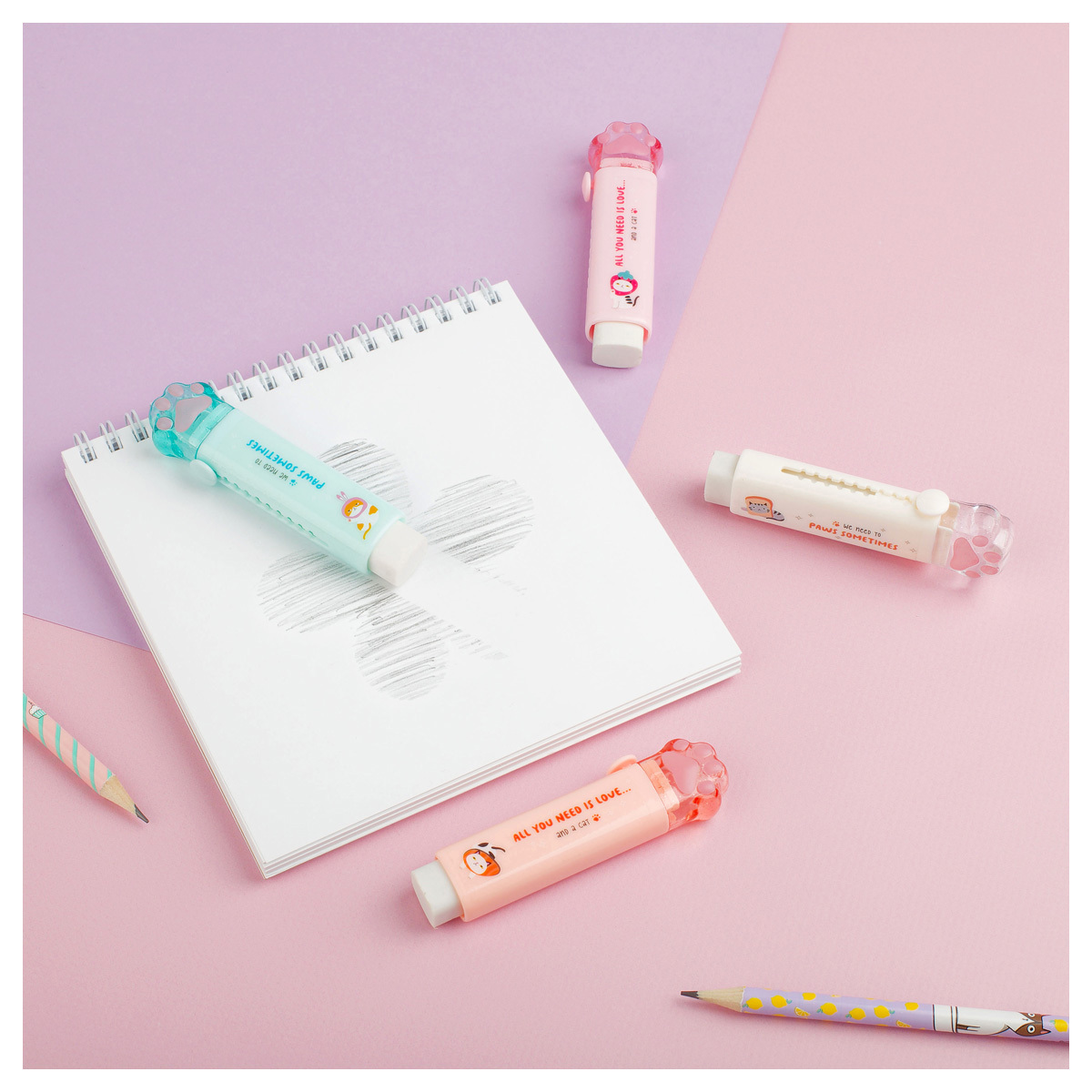 Ластик MESHU Cat Paw — забавный помощник в школе, офисе и дома. Изделие представлено в милом пластиковом корпусе в форме лапки, который эстетично выглядит в течение всего срока использования. Прямоугольный ластик 93*28*17 мм изготовлен из термопластичной резины и отлично стирает чернографитный карандаш. Специальный механизм позволяет выдвигать ластик по мере его расхода. В удобном дисплей-боксе 12 штук.