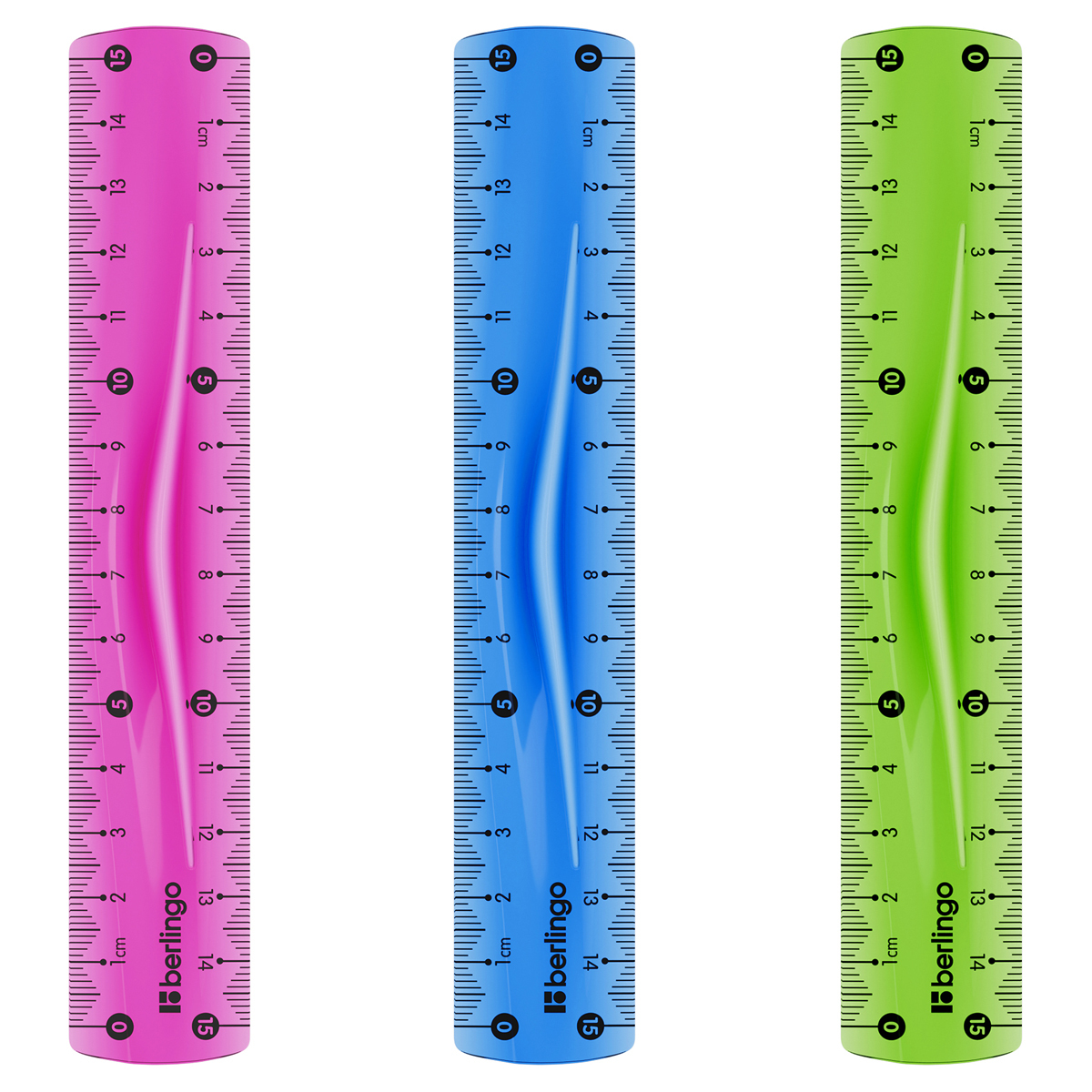 Линейка пластиковая, 15 см, гибкая, ударопрочная, высококачественная градуировка с использованием УФ-чернил. Цвета ассорти. Индивидуальная упаковка в пакет с европодвесом.