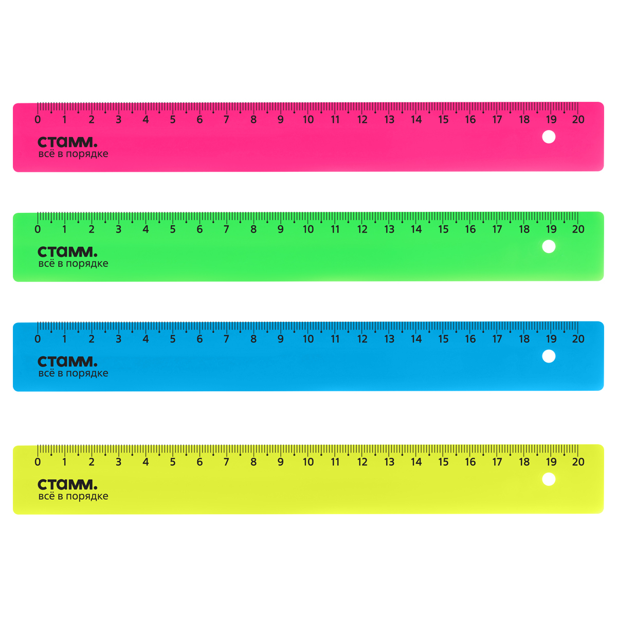 Линейка СТАММ Neon – отличный помощник для создания ровных линий. Размер товара – 20 см, ширина – 26 мм. Изделие имеет прочный и лёгкий корпус, безопасные закруглённые края и чёткую контрастную миллиметровую шкалу. Товар представлен в ярких флуоресцентных цветах.