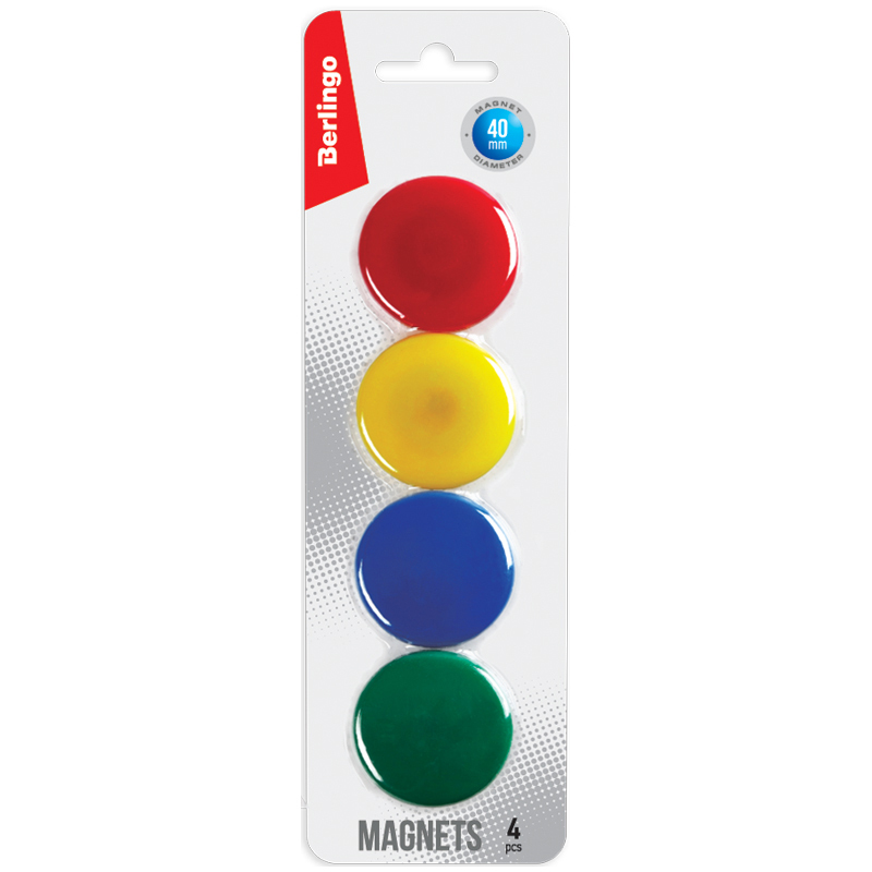 Магнит для досок Berlingo 40мм, 4шт., ассорти, европодвес
