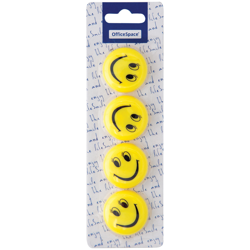 Магнит для магнитной доски "Смайлик", 3,5 см, 4 шт,пакет с европодвесом