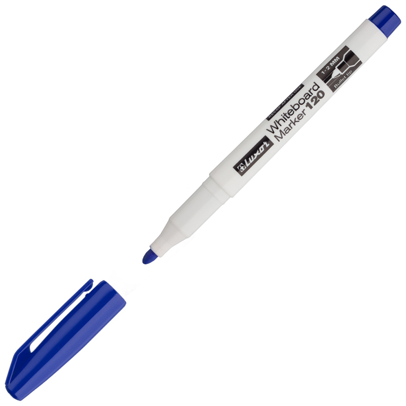Маркер для доски Luxor 120 предназначен для надписей на досках с магнитно-маркерной и на других непористых поверхностях: стекло, фарфор, пленка. Благодаря особому строению пишущего узла чернила дозированно поступают на поверхность, не вытекают из наконечника и не образуют клякс. Чернила на спиртовой основе высыхают на поверхности доски в течение 1-2 секунд. Маркер до 2 дней не высыхает без колпачка, а при закрытом колпачке в течение одного часа полностью восстанавливает свои свойства! Прочный фибровый наконечник не западает в корпус и сохраняет форму на протяжении всего срока службы. След от маркера легко удаляется сухой губкой. Пулевидный наконечник позволяет наносить яркие и однородные линии толщиной 1-2 мм. Цвет чернил - синий. Упаковка: картонная коробочка по 12 штук. Пиши ярко и стирай без остатка маркерами для белых досок TM Luxor!