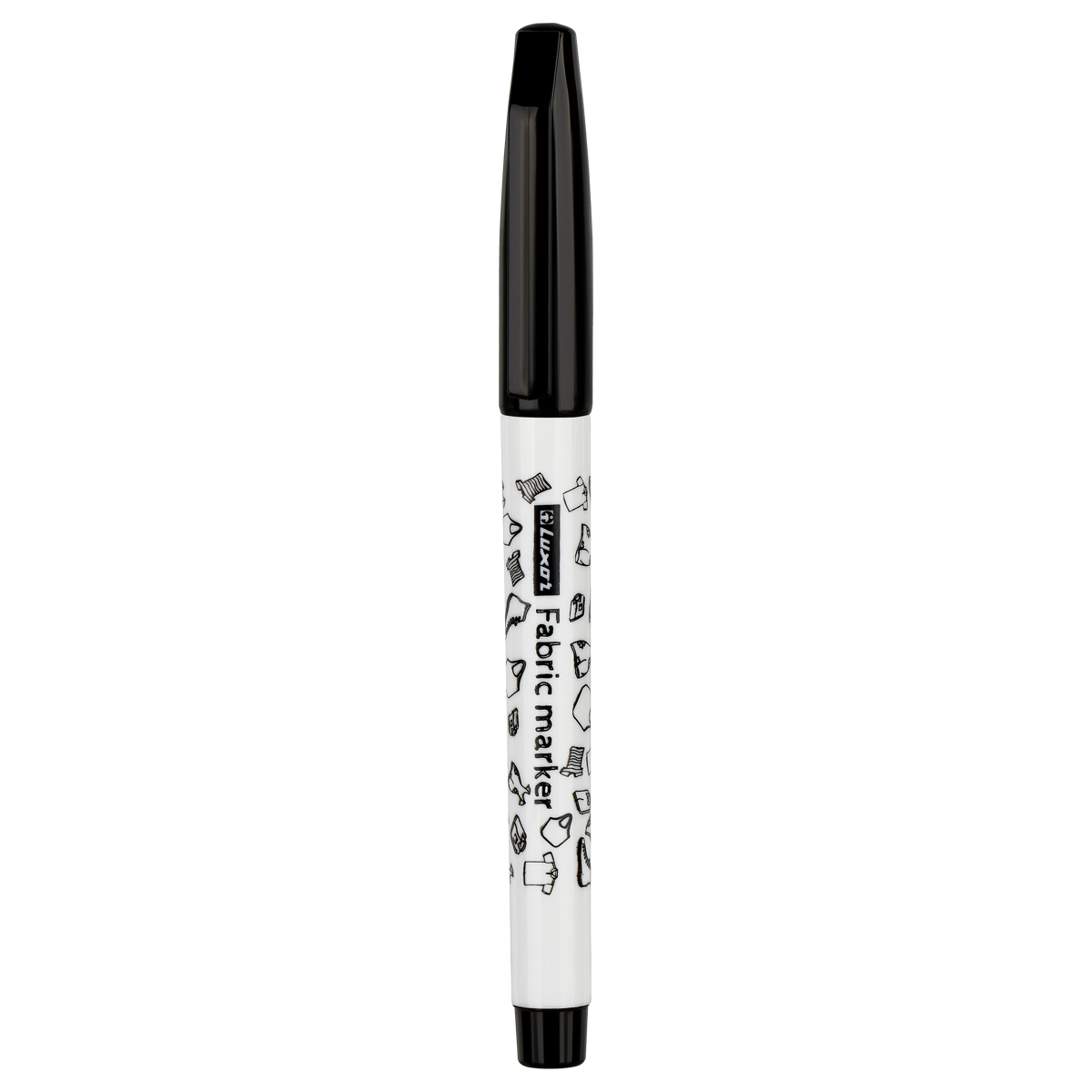 Маркер для ткани Luxor Fabric чёрного цвета идеален для дизайнеров, работающих с текстилем: от хлопковых сумок и футболок, до интерьерных тканей. Цвет автоматически закрепляется через 24 часа или после глажки. Не смазывается при стирке 40°C (в зависимости от типа ткани и содержания натуральных волокон). Ручная стирка должна быть более бережной. Маркер имеет круглую форму корпуса и водостойкие пигментированные чернила на водной основе. Чернила не токсичны, не выцветают после многих стирок. Пулевидный пишущий узел создаёт линии толщиной 1-2 мм. Колпачок имеет пластиковый клип. Упаковка: картонная коробка по 12 штук.