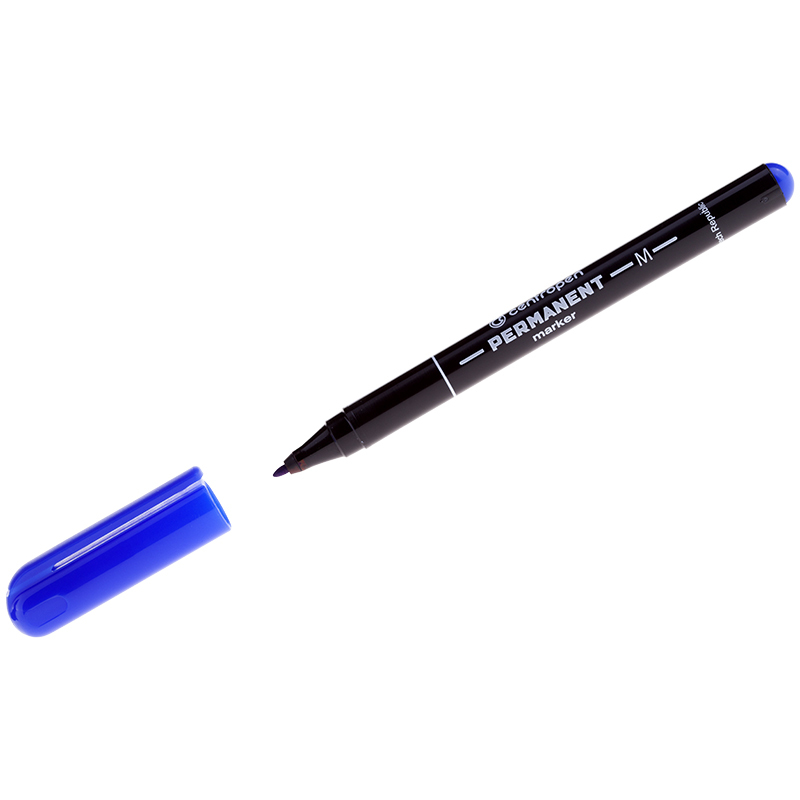 Перманентный маркер, синий. Предназначен для письма на большинстве поверхностей. Чернила на спиртовой основе, термостойкие (до 100°C). Устойчивый к воде, стиранию, атмосферным воздействиям. Пулевидный наконечник, толщина линии 1 мм.