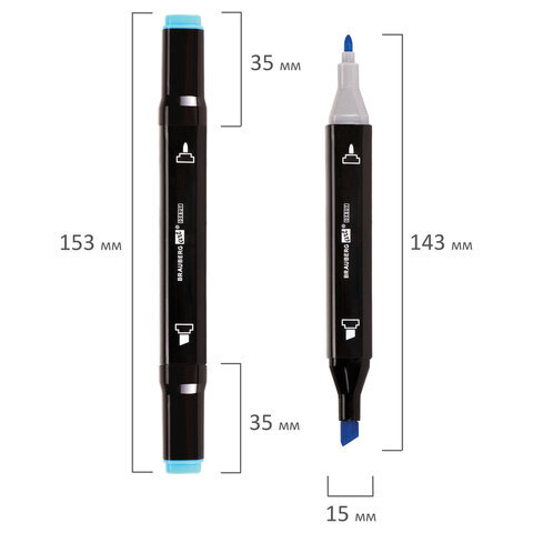 Набор двусторонних маркеров для скетчинга с прямоугольной формой корпуса из пластика, диаметр которого 15 мм. Форма наконечника - тонкий и скошенный. Цвета - ассорти. Толщина линии письма - 1-6 мм в зависимости от наконечника. Особая основа маркера обеспечивает такие качества, как стойкость к воздействию воды, ультрафиолету, низких и высоких температур. Благодаря спиртовой основе чернила быстро сохнут и не размазываются. Износостойкий фетровый наконечник устойчив к повреждениям и обеспечивает экономный расход чернил. Изделие не перезаправляется. Плотно закрывается колпачком, что предотвращает высыхание наконечника и чернил. Цвет колпачка соответствует цвету чернил.