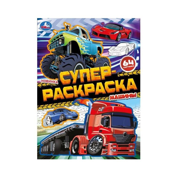 На страницах этой занимательной раскраски ребёнка ждёт встреча с самыми разными видами машин: спорткары, грузовики, монстр-траки и т.п. В ней он найдёт интересные картинки с чёткими контурами и короткие сюжетные тексты к ним. Суперраскраска не только разнообразит досуг детей, но и поможет им потренировать руку к письму.