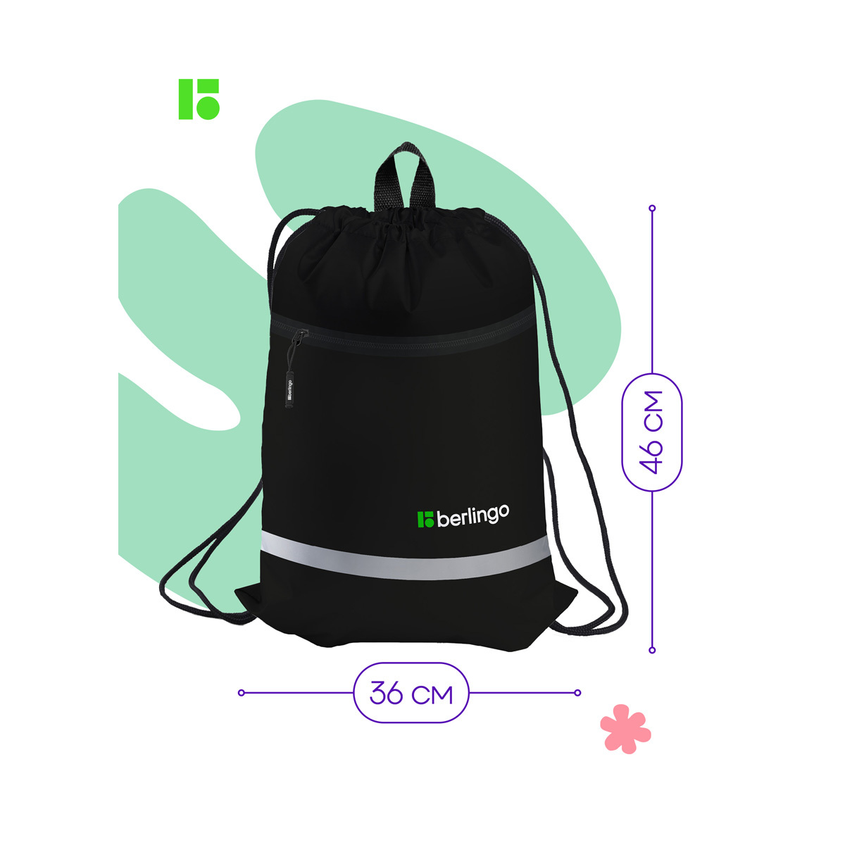 Вместительный мешок для обуви Berlingo "Basic black" оснащён широкими шнурками и вместительным передним карманом на молнии. Размер изделия 460*360 мм. Модель изготовлена из плотного износостойкого полиэстера. Световозвращающие элементы обезопасят в тёмное время суток. Мешок идеален как для зимней обуви, так и для спортивной экипировки. Индивидуальная упаковка в пакет.