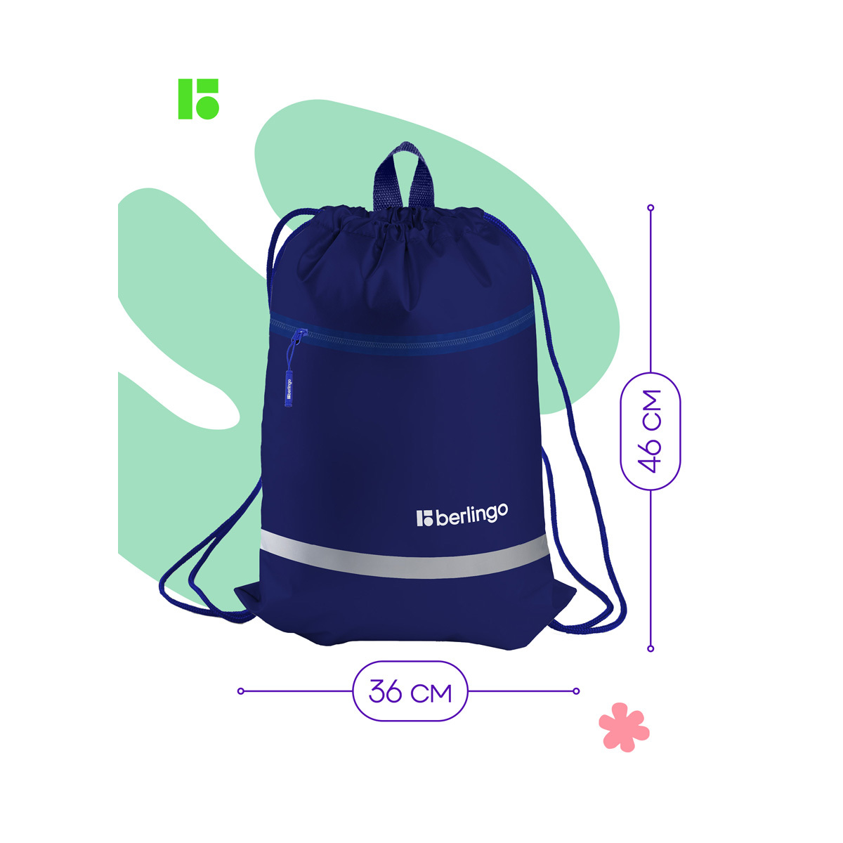 Вместительный мешок для обуви Berlingo Basic blue оснащён широкими шнурками и вместительным передним карманом на молнии. Размер изделия 460*360 мм. Модель изготовлена из плотного износостойкого полиэстера. Световозвращающие элементы обезопасят в тёмное время суток. Мешок идеален как для зимней обуви, так и для спортивной экипировки. Индивидуальная упаковка в пакет.