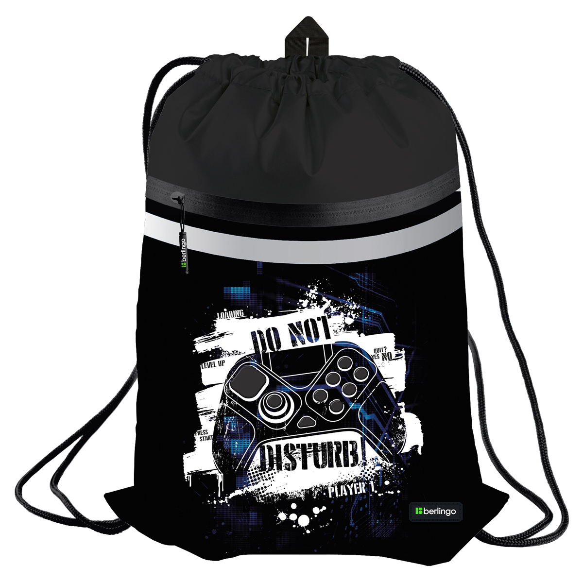 Вместительный мешок для обуви Berlingo оснащён прочными шнурками, светоотражающей полосой, вентиляционной сеточкой, передним карманом на молнии и петлей для подвешивания, а также имеет бирку для подписи имени, класса и телефона. Размер изделия 340*460 мм. Модель изготовлена из плотного полиэстера. Световозвращающие элементы обезопасят ребенка в тёмное время суток. Мешок идеален как для зимней обуви, так и для спортивной экипировки. Индивидуальная упаковка - пакет.