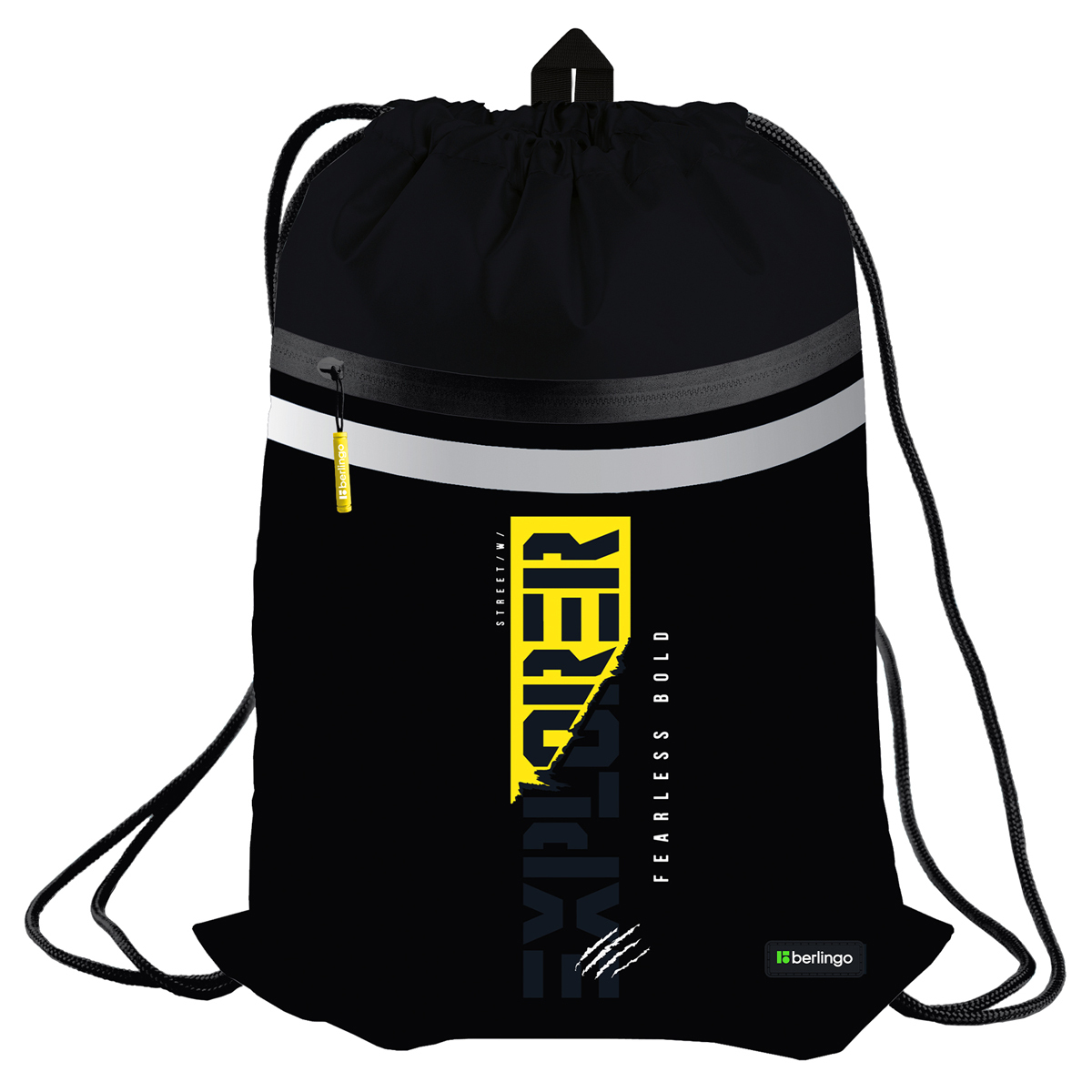 Вместительный мешок для обуви Berlingo оснащён прочными шнурками, светоотражающей полосой, вентиляционной сеточкой, передним карманом на молнии и петлей для подвешивания, а также имеет бирку для подписи имени, класса и телефона. Размер изделия 340*460 мм. Модель изготовлена из плотного полиэстера. Световозвращающие элементы обезопасят ребенка в тёмное время суток. Мешок идеален как для зимней обуви, так и для спортивной экипировки. Индивидуальная упаковка - пакет.