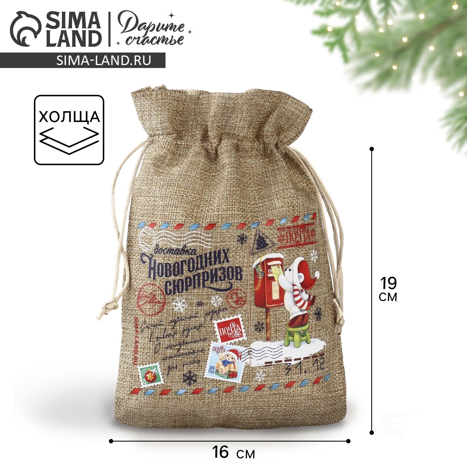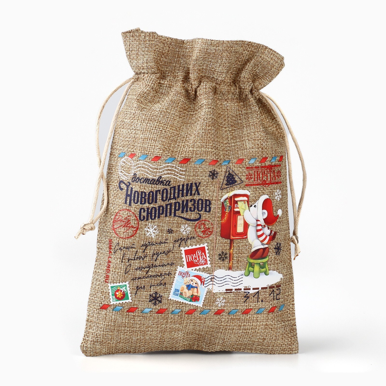 Мешочек подарочный с термонаклейкой «Новогодняя почта», 16×24 см ± 1.5 см